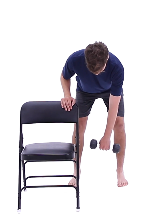 Start by placing your non-working hand on a table or chair for support with your working arm hanging straight down in front of your chest with a light dumbbell in your hand. Slowly start moving your hips from side to side and let the momentum from your lower body cause your hanging arm to begin moving in a side to side motion.